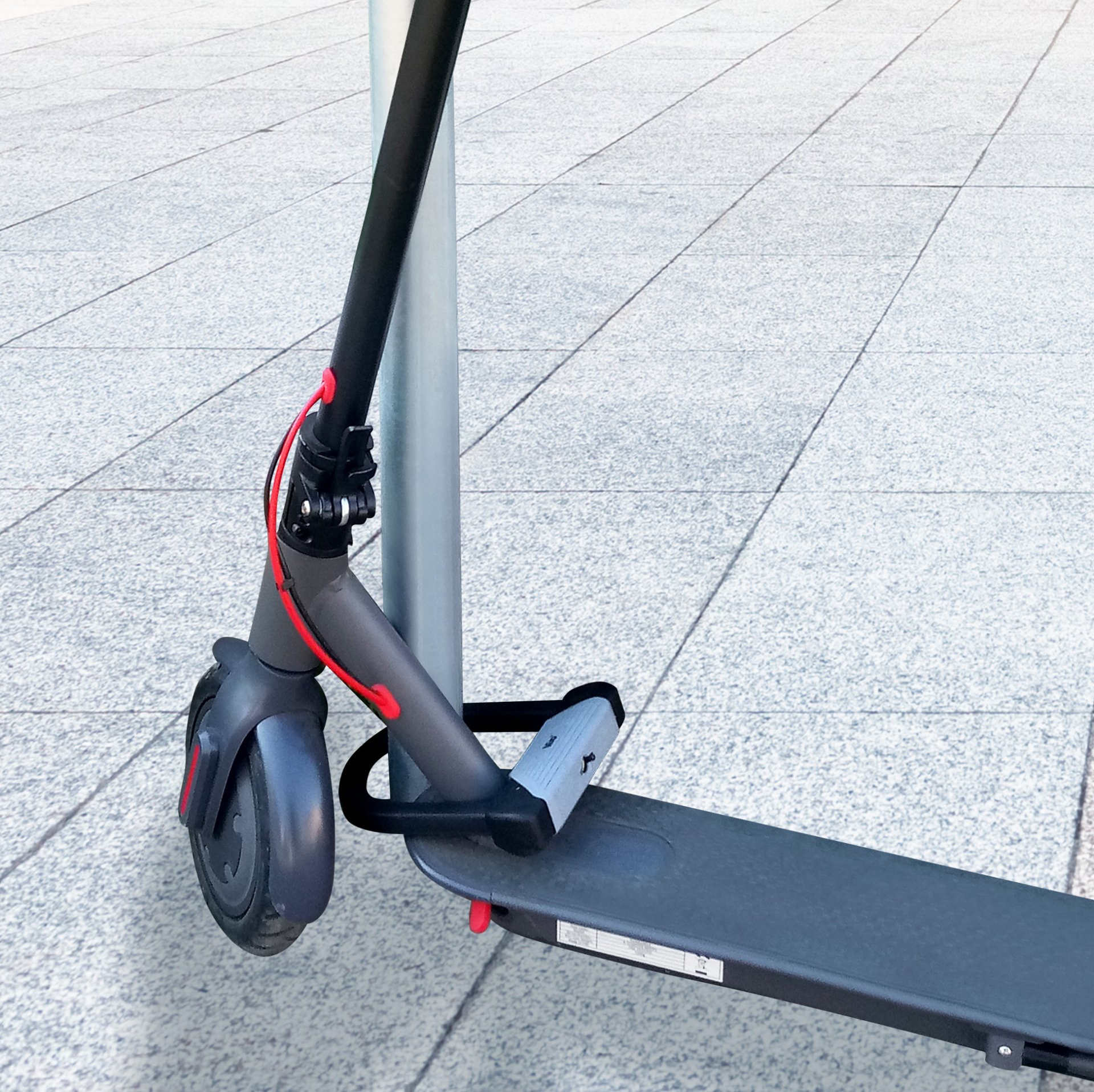 Inoltre: Se si vuole avere una ulteriore tranquillità si ha sempre la possibilità di utilizzare un secondo sistema di chiusura utilizzando i due cavallotti del Parkie, quello più pratico e consigliabile è quello a combinazione con il cavo di acciaio snodabile che si riesce ad avvolgere facilmente al piantone del monopattino.