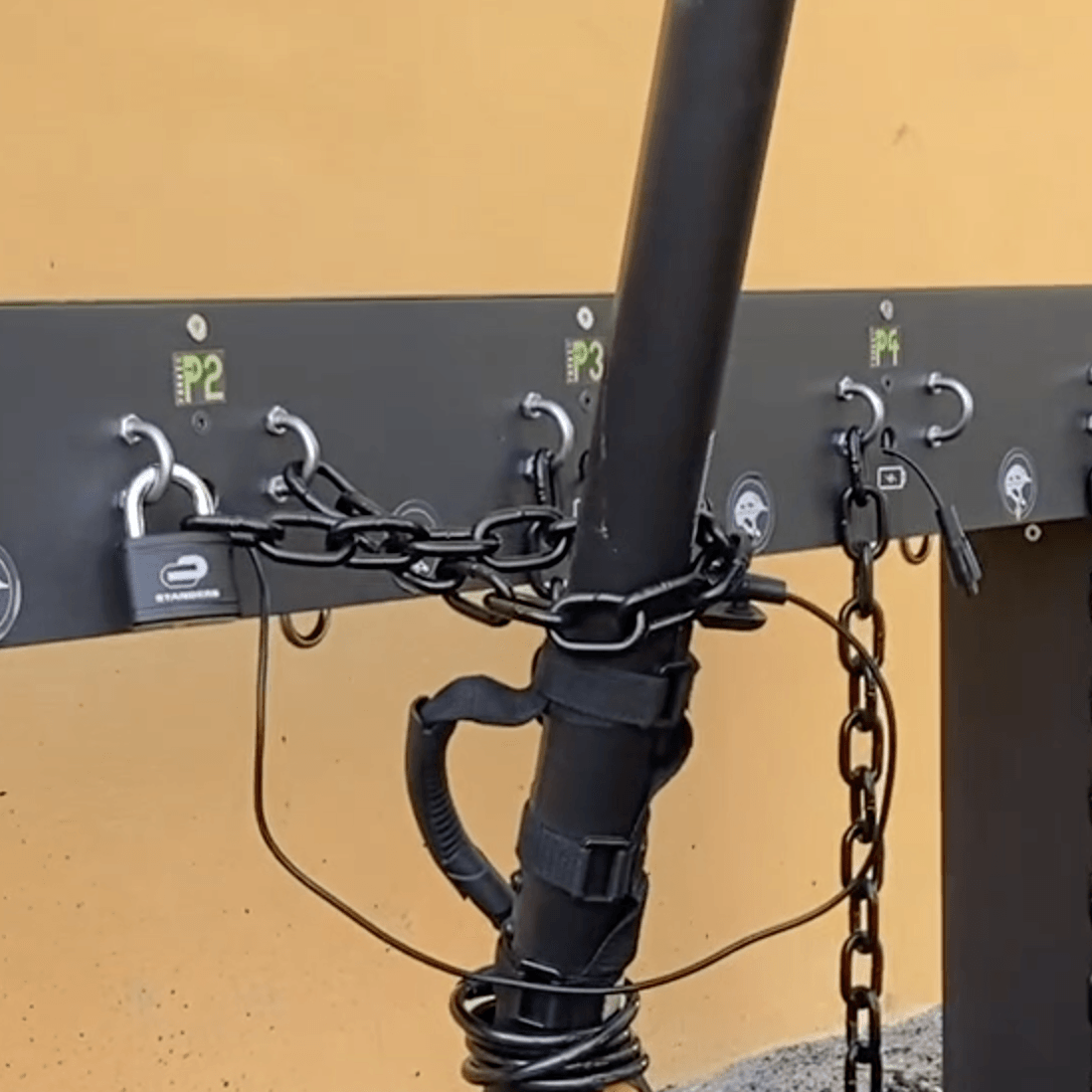 La catena non è un sistema rigido (tipo le rastrelliere ad asola), ma flessibile; infatti si possono parcheggiare anche gli Hoverboard, gli Skateboard elettrici, basta fare richiesta a Parkie per ottenere il risultato ricercato.